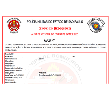 Execução de vistoria técnica, com a elaboração de um relatório detalhado que identifica as necessidades de adequação do imóvel antes da solicitação de vistoria para a emissão do Certificado de Licenciamento do Corpo de Bombeiros (CLCB).