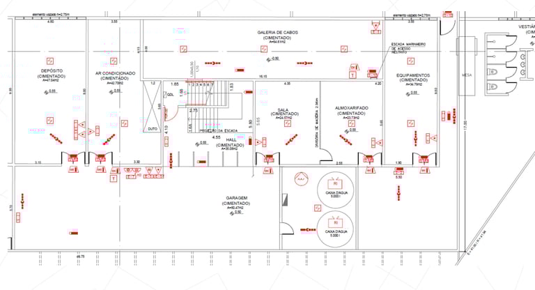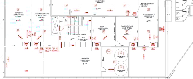 Elaboração do desenho e planta detalhada para apresentação ao Corpo de Bombeiros, atendendo às especificações técnicas exigidas e facilitando a aprovação dos projetos.